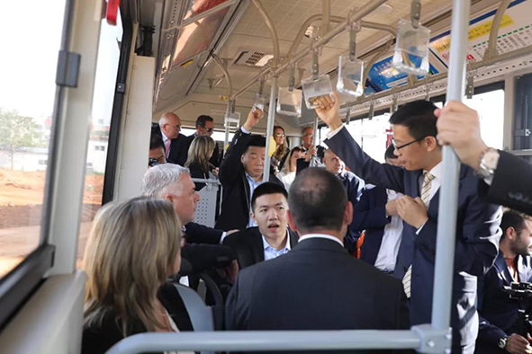 在董楠的邀請下,瓜達拉哈拉省代表團一行試乘了我司生產的新能源公交車,期間董楠向代表團介紹了此公交車的性能,主要參數等,不少代表團嘉賓對此非常感興趣,對產品的性能給予了高度的評價。