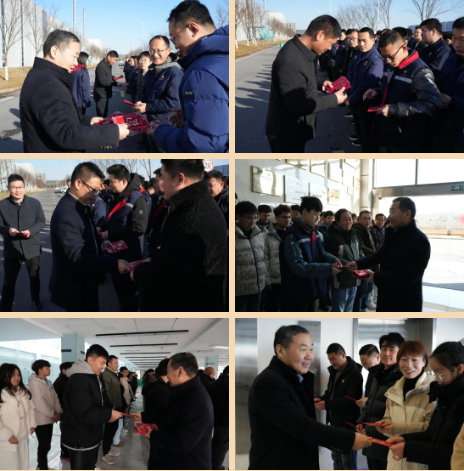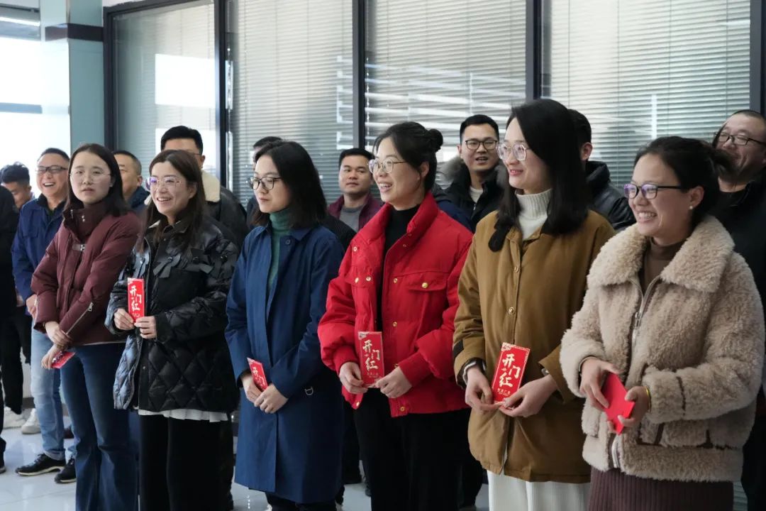 董事長汪先鋒、 CEO董楠、副總經理段術林、副總經理唐梁、總工程師陳青生等公司高層為大家派發開工紅包,并送上溫馨祝福。親切的寄語,熱情的鼓勵,營造出團結喜慶的開工氛圍,并為開門紅攻堅戰的開啟注入暖心正能量,一片歡快景象。